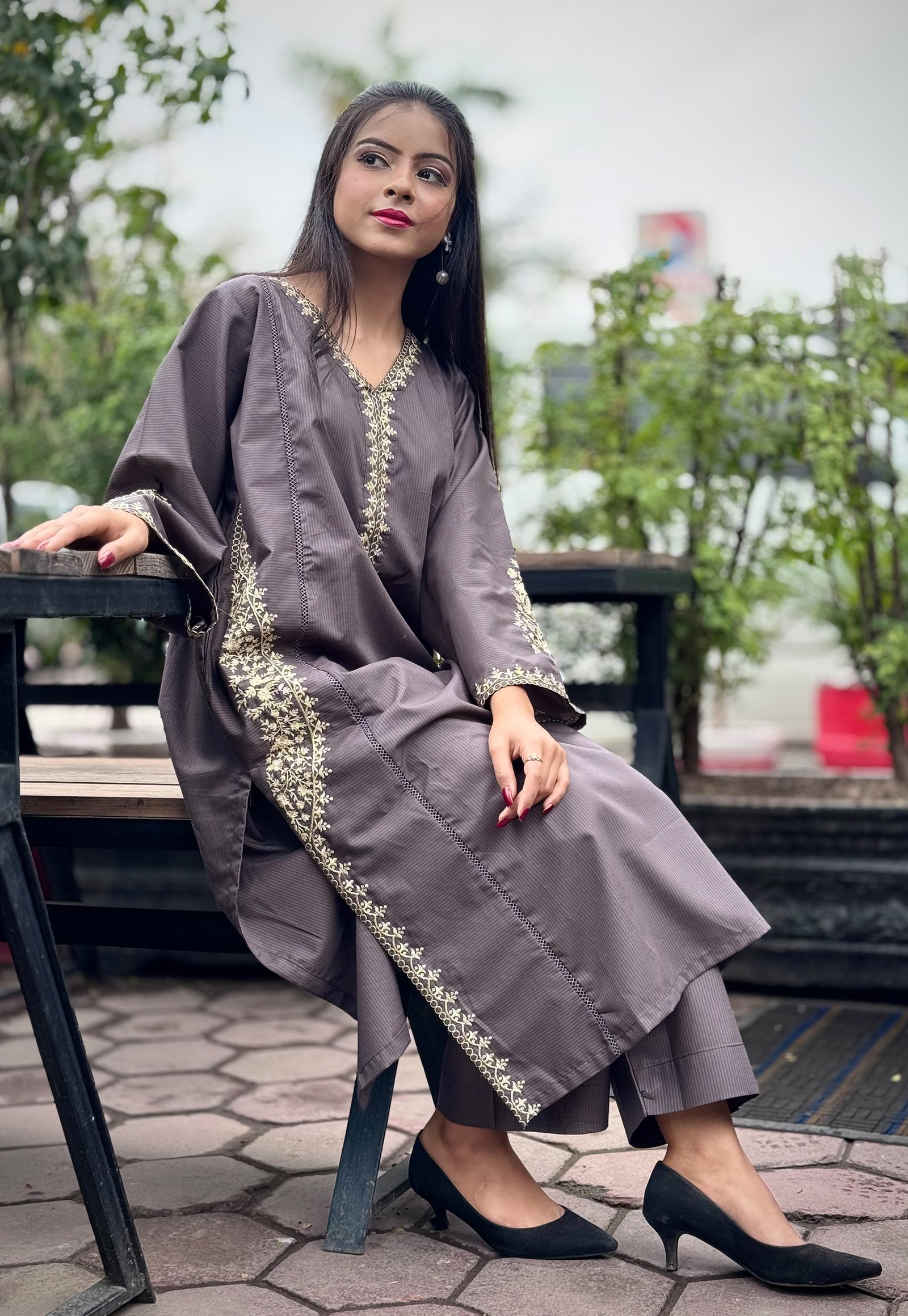 Kashmiri Grace โ Embroidered Bell Sleeve Qameez Set