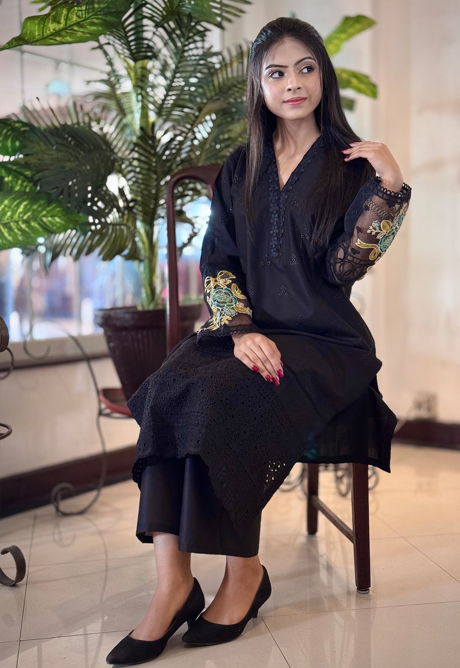 Noir Elegance โ Embroidered Chikankari Suit