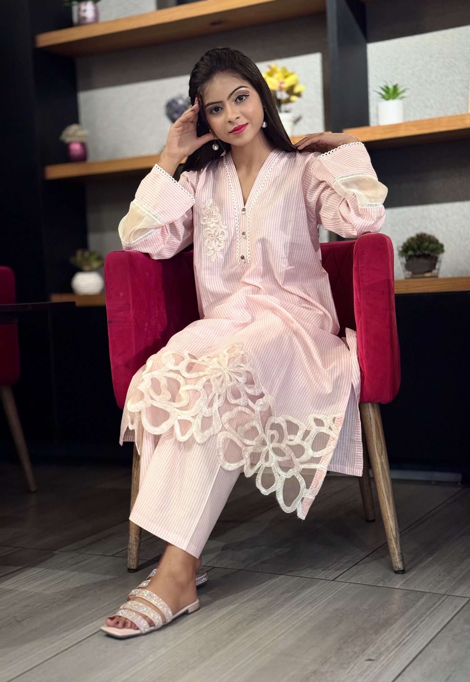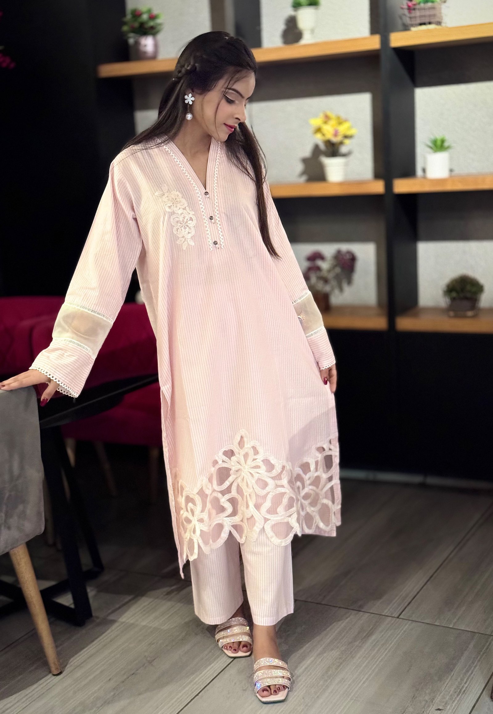- Kurta:ย Beautifully embroidered, knee-length with elegant lacework
