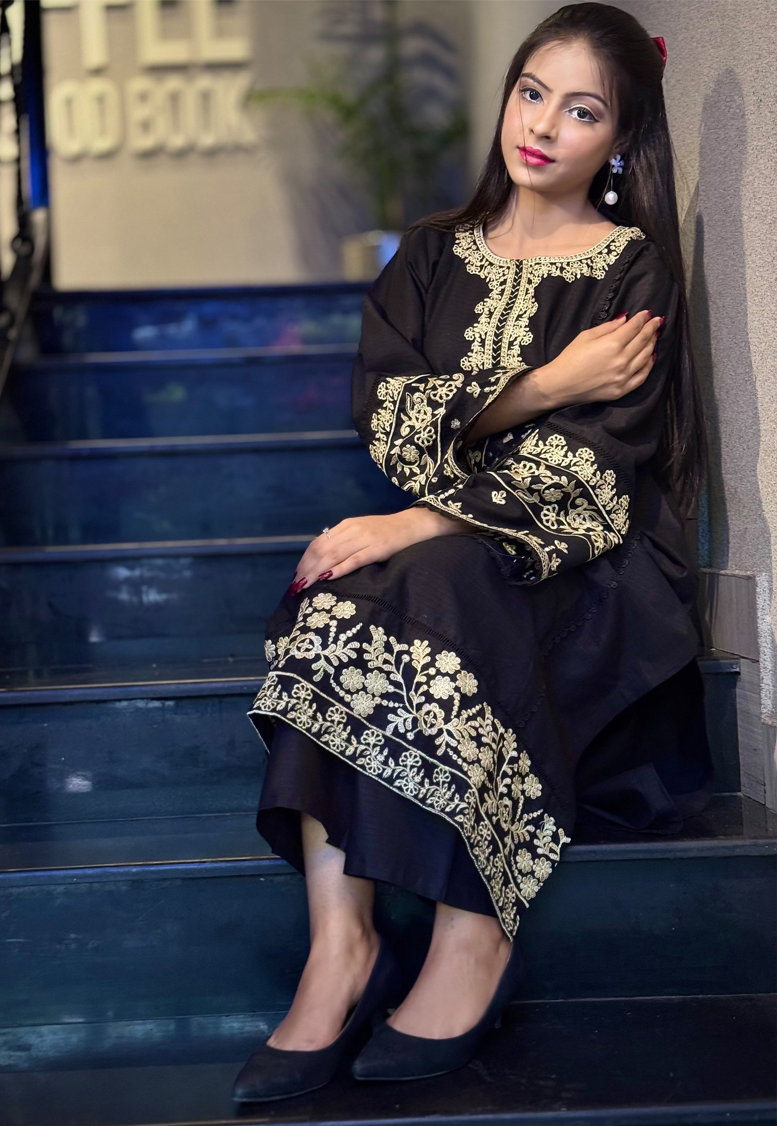 Midnight Elegance โ Embroidered Long Shalwar Qameez