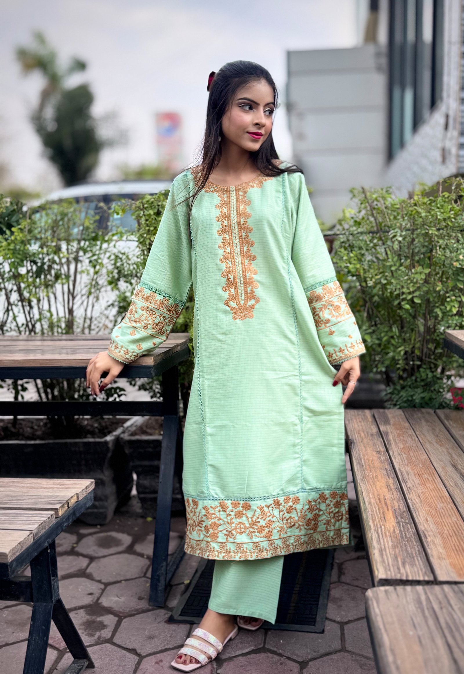 Enhance your wardrobe with this beautifully designedย 2-piece embroidered suit, perfect for any occasion. Crafted fromย premium quality fabric, this suit provides unmatched comfort and durability while keeping you stylish.