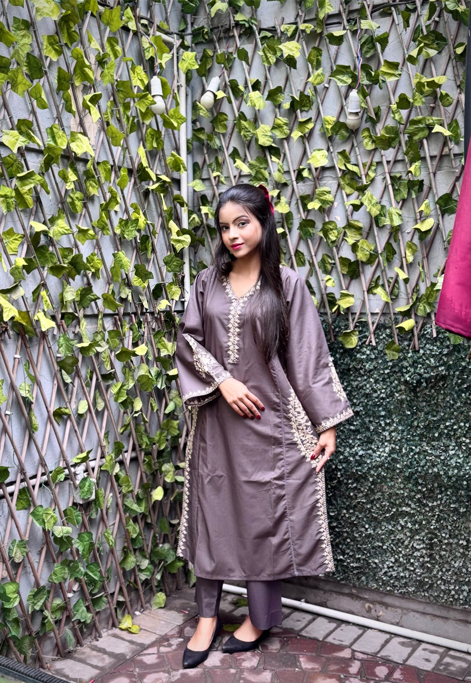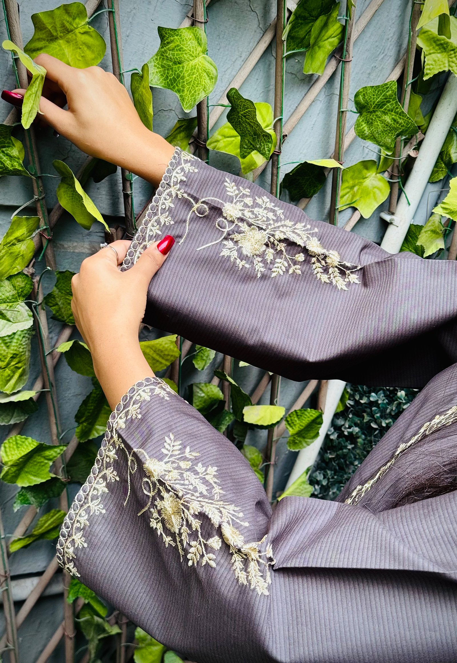 Kashmiri Grace โ Embroidered Bell Sleeve Qameez Set